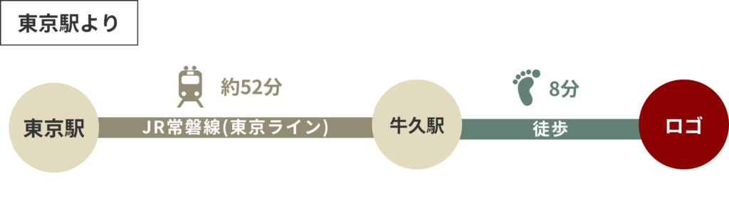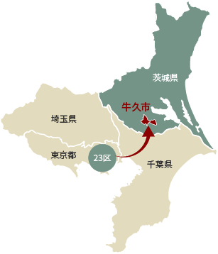 JR 常磐線「牛久駅」下車、東口(シャトー口)より徒歩約8分
