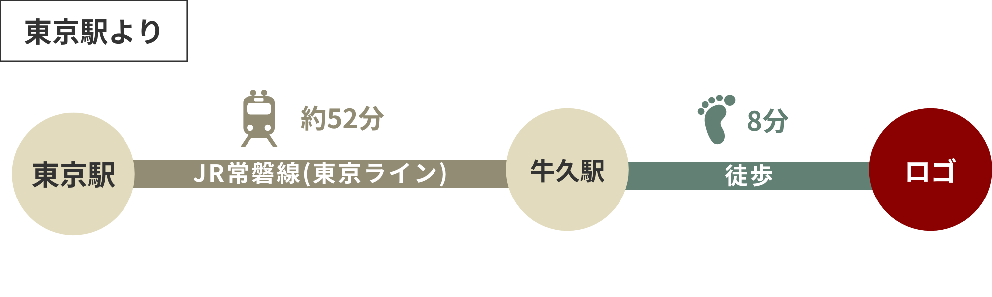 JR 常磐線「牛久駅」下車、東口(シャトー口)より徒歩約8分
